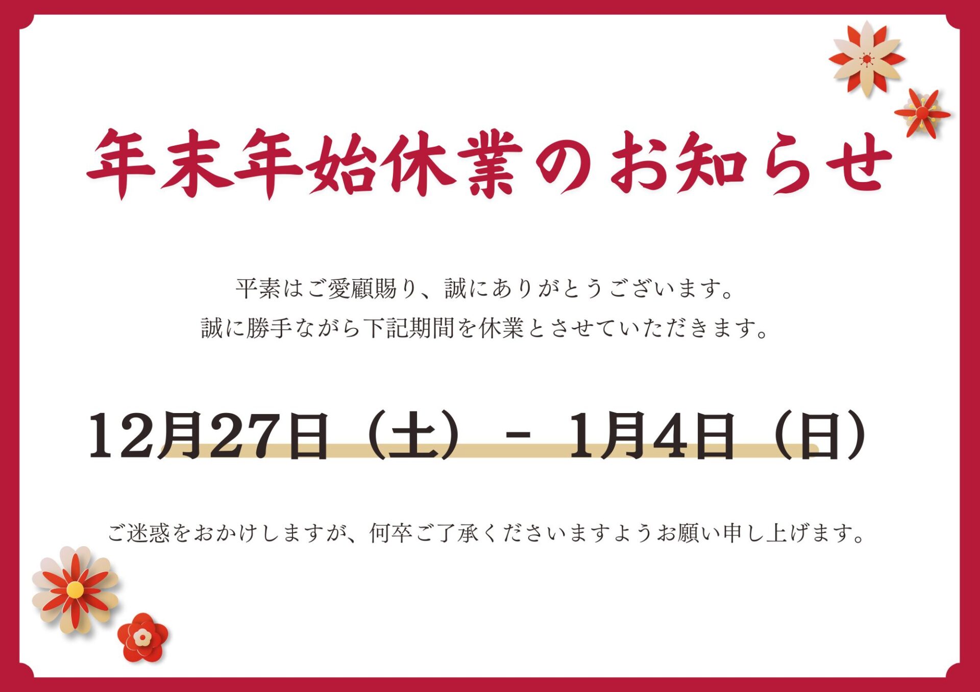 🎍年末年始休業日のお知らせ